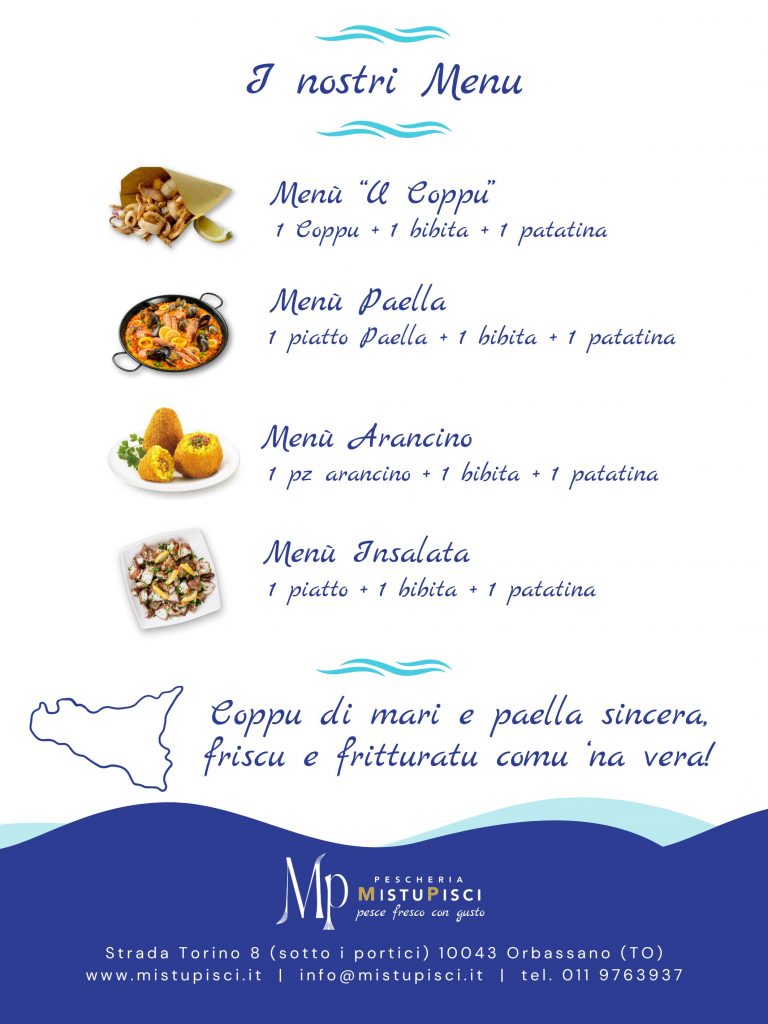 MistuPisci nasce dalla passione di Martina per il mare e la buona cucina. Originaria della Sicilia, ha portato a Orbassano i sapori e i profumi della sua terra, creando un luogo dove qualità e tradizione si incontrano. Ogni giorno selezioniamo il miglior pesce fresco e lo trasformiamo in piatti unici, pensati per chi ama il gusto autentico.